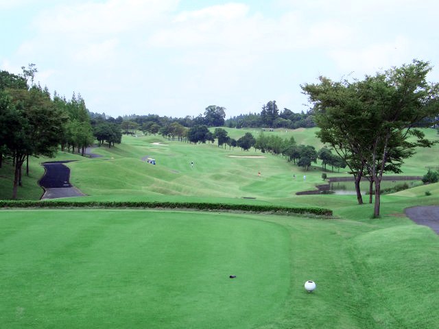 この13番ホールは、京カンで一番長いミドルホールです。チャンピオンティーからですと、フロントエッジまでおよそ425ヤード。しかもグリーンは縦にグ~ンと長い50ヤードもあるグリーンです。一番奥にピンを切られると、打ち上げている事もあり、さながらロングホールです。ティーショットは、14番ホールに隣接した池が右目の視界にしみじみと入り、スライスしたボールはすべて魅入られたように吸い込まれてゆきますぞ!(笑)私の悪友たちは『ンなんか。気持ち悪いなぁ・・・。』という発言の後、必ず池にぶち込んでめでたく“昇天”する方がきわめて沢山いらっしゃいます。そういえば、28日、拙者も入れてしまいました・・・“昇天ダボ”でした。しくしく。ネガティブシンキングはそういった結果を生みますな。ある意味“マーフィーの法則”ですかね?攻略するには、確実に左側フェアウェイの“上の段”にティーショットをランディングさせる事が、まず第一段階。ただ、この段に1打目を置くには、およそ220ヤードのキャリーが必要です。池を気にせずに、しっかりとご自分のショットを心がけてくだされ。そして第二段階。ここからはグリーンまでだらだらと打ち上げていく200ヤード。狙いは確実にグリーン左サイドですぞ!右のバンカーに入れてしまうと、そこには「はい!ほとんどノーチャンスね!」という閻魔様が待っております。(笑)左からなら『う~ん!もしかしたらピンに寄るかもしれないわよ!』というあてにならない女神様がいるかもしれません。しかし!このホールの最大の難関は第三段階に潜んでいます。そいつは“グリーンそのもの”ですぞ!このホールのグリーンは左から順目。そして奥からは強烈な下りです。目の錯覚を利用した傾斜が分かりにくいグリーンが、4パットへと誘います。この第三段階をクリアしたい方は、素直にキャディーさんにラインをお聞きくだされ!ただし、それで外してもくれぐれもキャディーさんのせいに等なさらないよう。紳士淑女はすべてご自分の責任で、プレーなさるのが“正しいひとの道”でございましょう。このように京カンの中でもひときわ難しいこのホールですが、焦らず腐らずプレーなさって、どこかにいる“ゴルフの女神様”を味方に付けてくださいね。とりあえず、ボギーを目指してくださいな!女神様がつけば、パーはおろかバーディーまであるかも知れませんぞ!