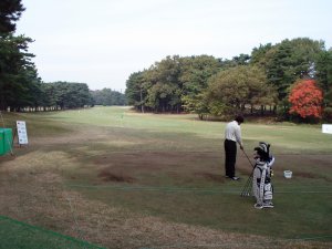 丁度そのまま付いてこうとしたとき、丸ちゃんを見たいとワイフが云うので、ドロー表で探すと、隣の2番(いつもは11番)に現れそうだったので、ティーグランドを目指そうとしたその時、丸ちゃんらしきスイングの人が私の得意な竜巻球を打つではありませんか、バキバキという音と伴に、左林入口に黄色いボールは飛んできました。そうです、やはり紛れもなく丸山プロのボールでした。ちょっと苛立ちを隠せない丸山プロでしたが、残りグリーンエッジまで247yとキャディが云っていた場所から低い球で林の空間を打ち抜いて、グリーン手前のバンカーに運びました(残念ながらボギーだったが)。