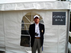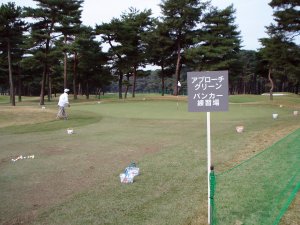 一番最初は、今トーナメントでは使用しない西コースのグリーン周りに設営されているアプローチ練習場に行き、プロのアプローチの技がどんなものなのかを見に行きましたが、私の勉強不足から知らないプロばかりだったこともあり、そしてあまり参考にならなそうだったので早々に引き上げる。そして、隣の打球場(ここも使わない西コースを打球場に変えてある)へも行きましたが、この時刻では誰も球を打っていませんでした。