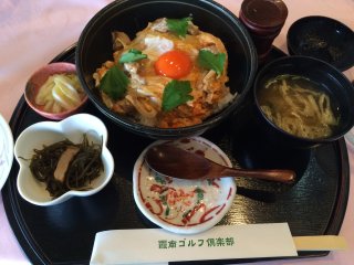 OUT49(14) パター14回にしては打ちすぎな気がしますが、調子は上向きになって来ております。お昼は、お勧めの親子丼(大盛り)を頂く。うーん・・・ま、後半も頑張りましょう。