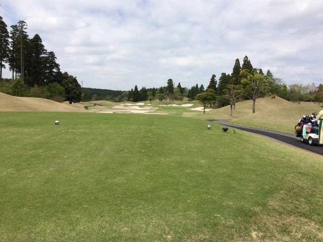 1番 542y PAR5 前の組が260y付近にいたがキャディーのFさんにどうぞと言われてしまう。しかし周りの方に止められ、少し待つことに。300y付近でどうぞ。と言われて打つことに。完璧なドローで飛んで行く。少し危ない予感がしたが・・・前の組の真後ろに落ち、越してしまう。。。キャディーのFさんにそこまで行くのわかってるなら言ってください。と少し怒られてしまう。。。まだ160人中の12人目なのだが、取りあえずドラコンの旗に名前を刻む。残り230yを3wで狙うも引っかけてバンカー手前へ、残り50yを狙いピン直撃、2mを打ちきれずパーとなる。
