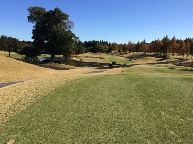 14番 323y PAR4 1wで左の花道を狙い強めに打つが、擦り球となる。ラッキーに池手前で止まる。残り70yから57°で打つも恒例のシャンクでバンカーへ。そこから再度シャンク。アプローチもダフリ6となる。