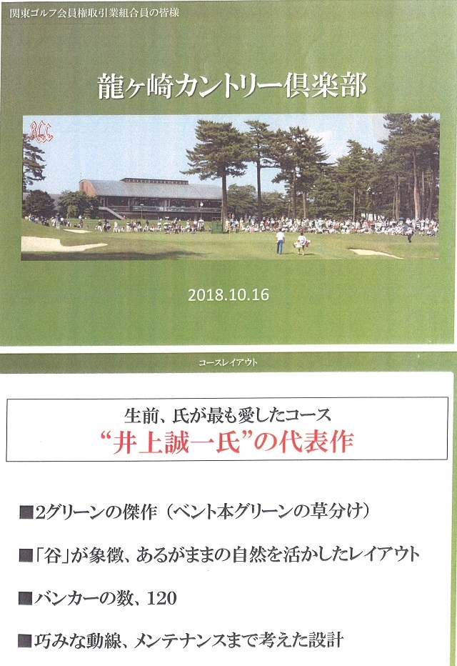 フリーで来場できるコースを探している貴方、井上誠一氏が大好きな貴方、常にChoiceで全国トップ10にランクインするコースに入会したい貴方、男女のナショナルオープンを両方とも過去に開催したことがある全国17コースのどれかに入りたい貴方、リーズナブルで美味しい食事を提供してくれるゴルフ場に入会したい貴方、マイボトル棚を5000円で借りたい貴方、練習環境が優れているゴルフ場に入会したい貴方、そういう方はぜひ龍ヶ崎への入会をご検討されてみては如何でしょうか?