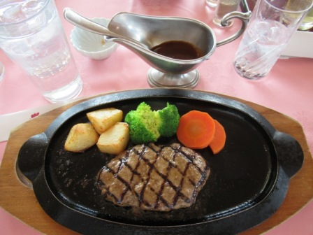 ゴルフ場のハンバーグというと戸塚(アラスカ)のハンバーグが最高と思っていましたが、浜野のはその上をいく味と感じました。あの斜めの焦げ目が更に美味しさを際立たせているかもしれませんが、あれは間違いなく浜野独自で作ったハンバーグでしょう。で、あの味からすると肉自体かなりの上質の肉を使っているであろうと推察します。ソースも3種類(デミグラス、おろしポン酢、にんにく醤油)あり、私はデミグラスで食しましたが、最高でした。で、今度は違うソースでもあのハンバーグを味わってみたいです。