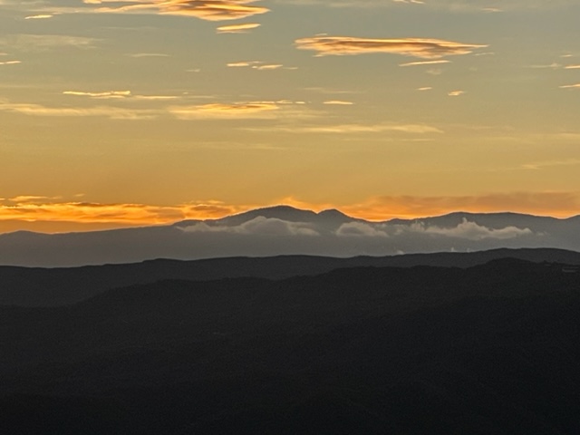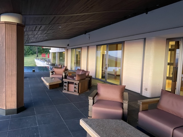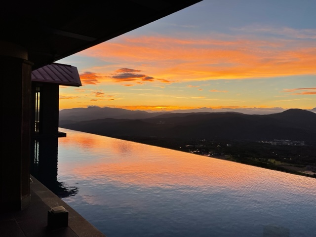 朝、日の出が5時18分でしたが、レストラン脇のチェアから眺める朝日と山のコントラストがこれまた超格別で、それに雲が入り交りまさに神秘的な情景が映し出されるのであります。