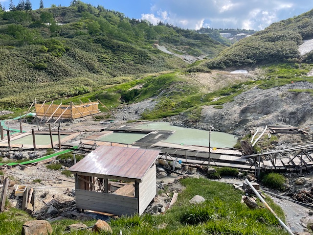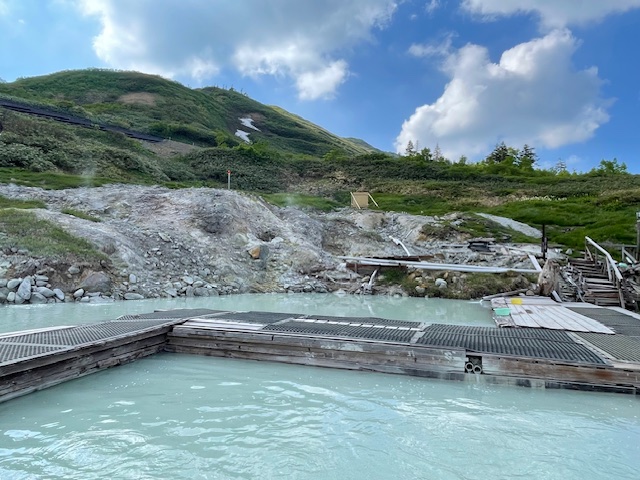 3番目の温泉は岩手県八幡平市の藤七温泉です。道中、生えている木々の種類が違ってくるのが分かり、かなり標高が高いことが窺えました。なんと標高1400メートルです。冬は閉鎖されている温泉です。ここも強酸性の湯でございました。露天風呂がいくつもあり、お湯は下からプクプク湧いてくる温泉で泥湯的でもありました。ここもまた是非是非来たい温泉でした。