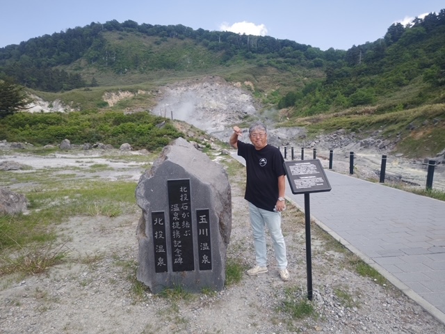 続いて、30分ほど走ってやはり仙北市の玉川温泉に行きました。日本で一番酸性が強い温泉(PH1.2)です。まさに強酸性で私はお尻の穴と足の指先が痛くなりました。が、まさにここは湯治に最高の温泉と感じました。ここもまた是非是非来たい温泉でした。隊長は「信吾さん、今度は新玉川温泉に泊まりましょう!」と仰ってました。