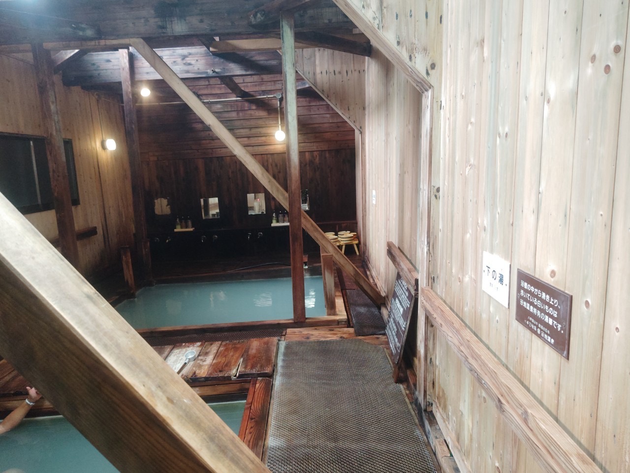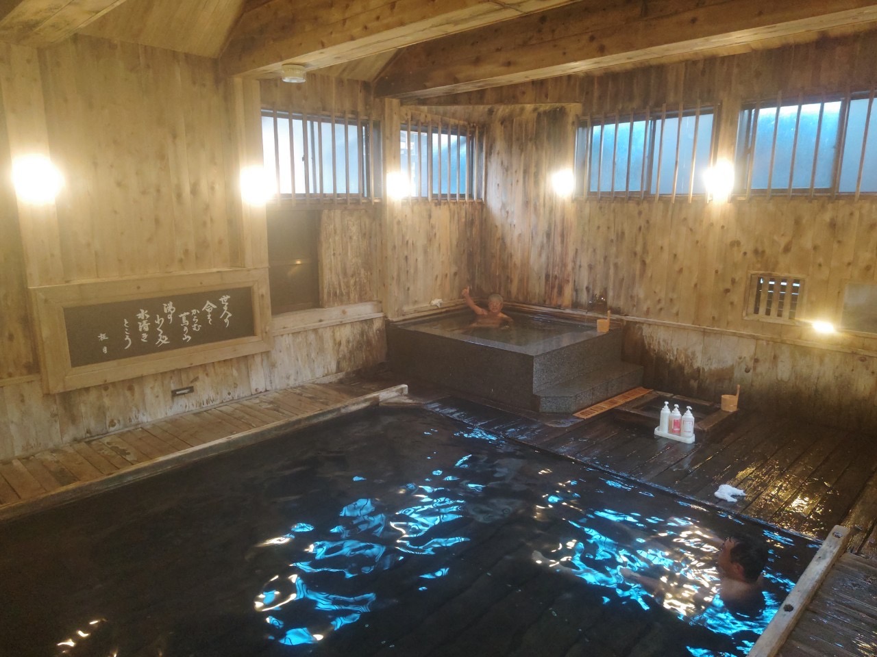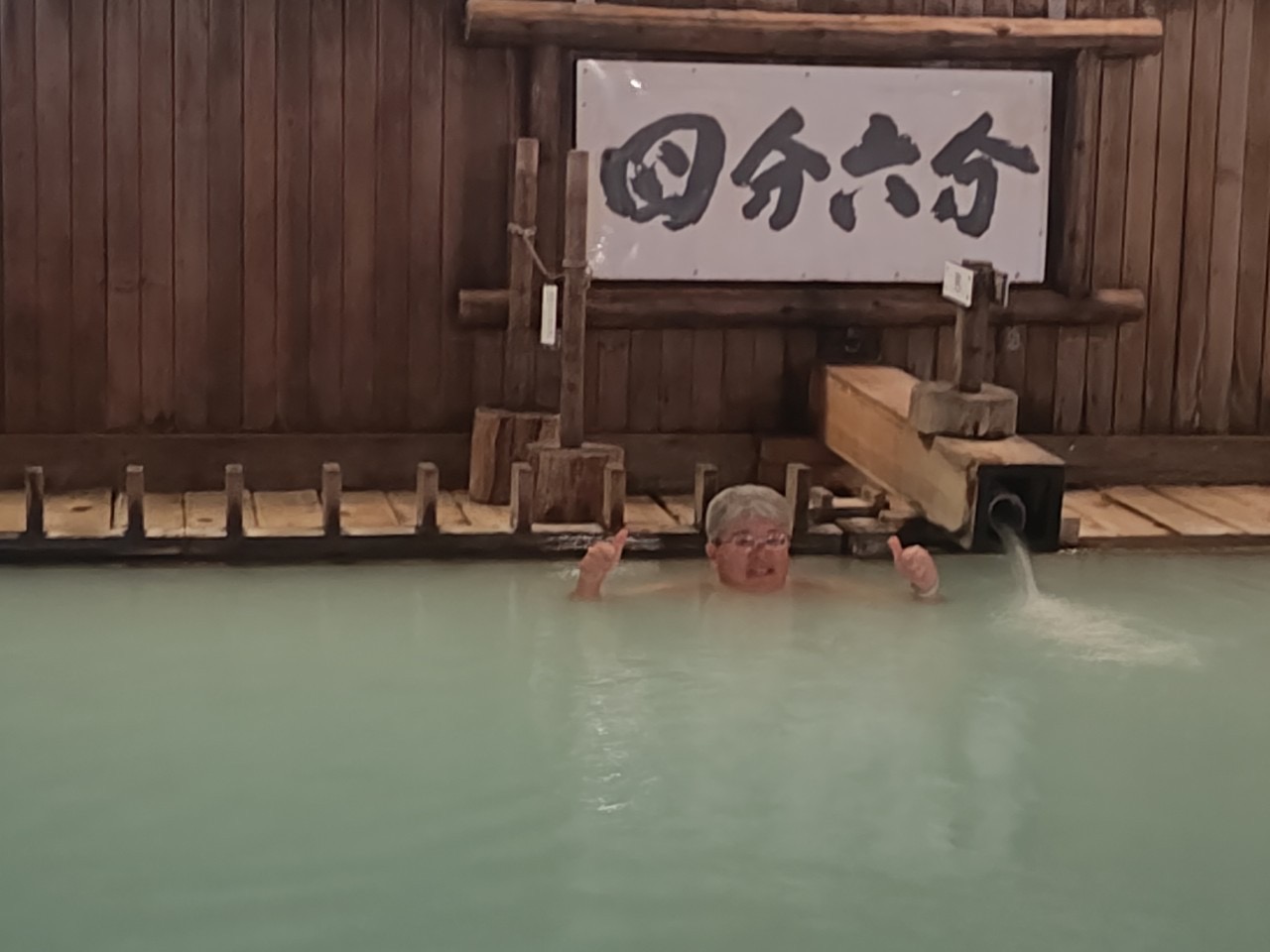 そして、今ツアー最後に行った温泉が十和田市の谷内温泉です。日本三秘湯の一つで今回の温泉ゴルフツアーを締めくくります。ここも下からポコポコ湧いてくる温泉で、ぬるい36度のお湯にじっくり浸かりその後42度の熱いお湯で締めくくったのでした。