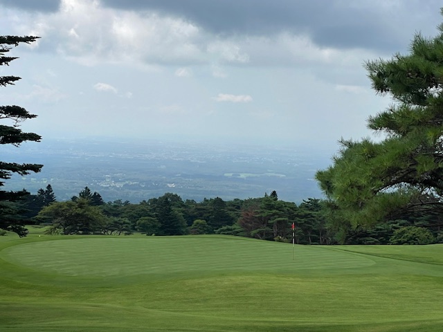 今回は1泊2ラウンドでしたが、まず、井上誠一氏の処女作のこの味わい深いコースを素晴らしいと感じました。レイアウトは山あり谷ありですが、14番からの山々と18番からの下界の眺めなどは絶句するほど素晴らしいです。また、藁草履のように飛んで行く洋芝をパズルのように嵌める快適さも爽快です。だいたい、気温がやはり5度は違いますね。レイアウトも狭いところもあり、スリルもありますし、16番の打ち下ろしは超豪快です。