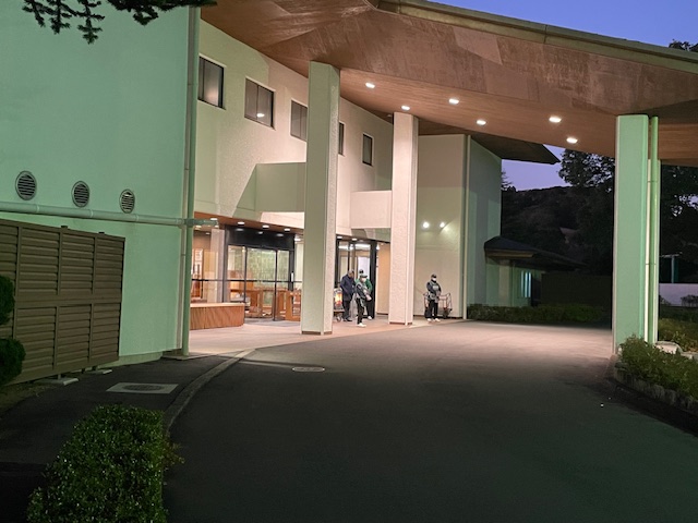 翌朝、6時2分前に散歩に向かおうと思い、ロッジフロントに行くと、この時刻で係の方が座っておられたので「クラブハウスは何時からオープンしますか?」と尋ねたら「6時からです。レストランもやってますよ」と仰ったので、とりあえず、クラブハウスに向かいました。おお~ホントだ!3名ほどの方と中村支配人がすでに玄関前に立っておられるではないですか!