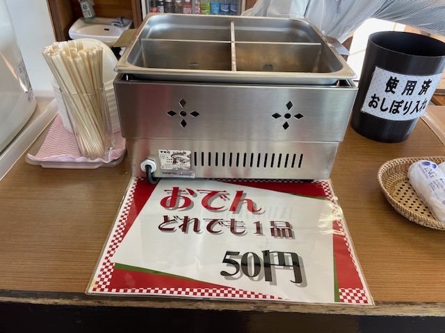 房総ゴルフ場の良さは茶店が有人(大上ゴルフ場は初めから無人)であることです。で、すべてが安いです。今の時期はおでんをやってますが、全種類50円です!最高です!
