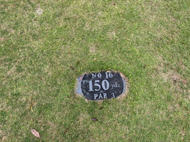 16番150yショートは、7アイアンで打つも右へ。寄らず入らず。