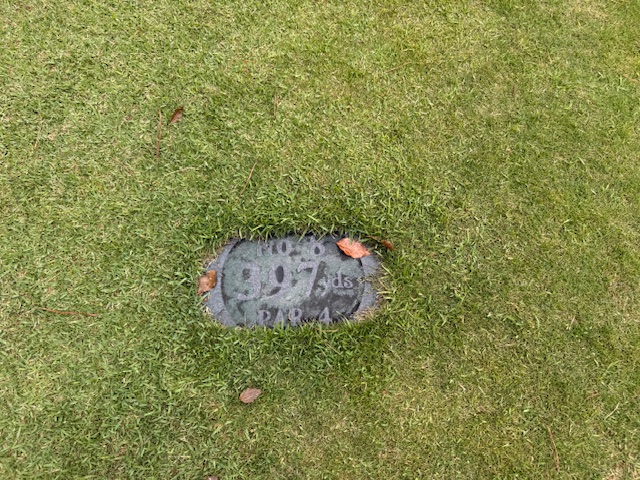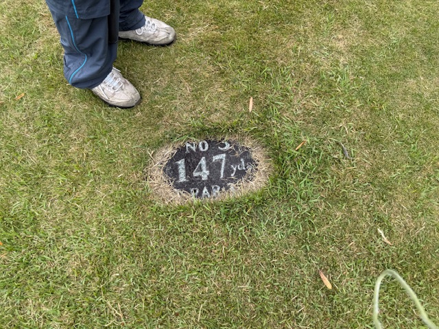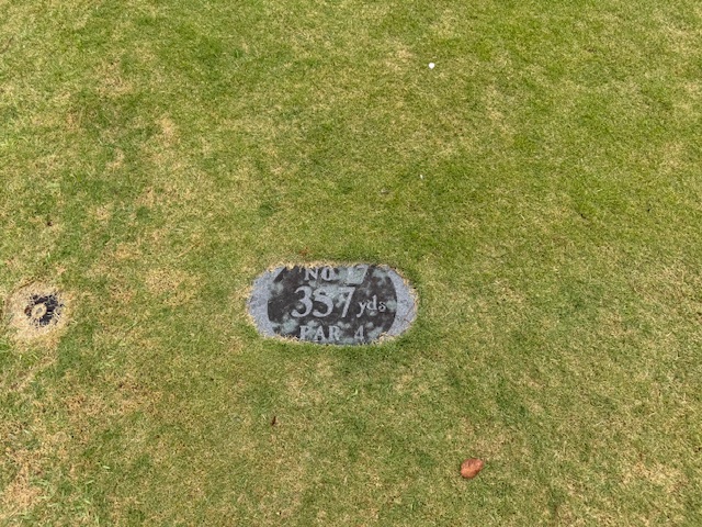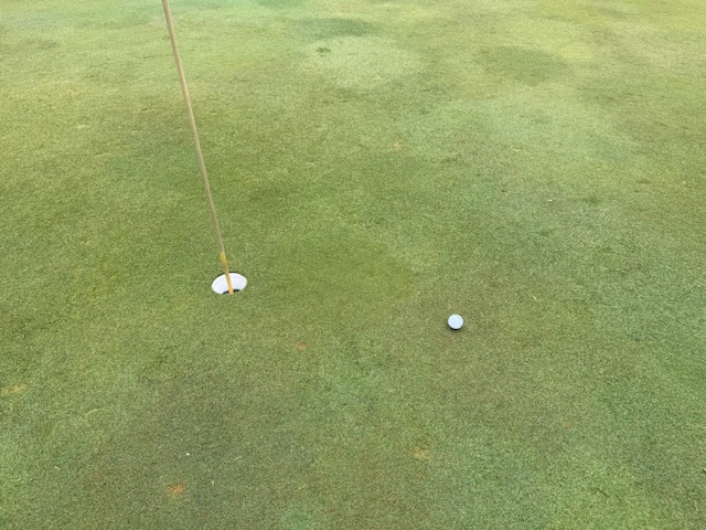 7番157yショートは、5アイアンで写真の位置50センチに1オン。ナイスバーディ。