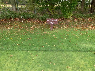 小さいグリーンの周りが林に囲まれているせいで、風が影響しないことがありクラブ選択に悩みます。