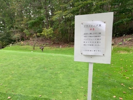 男性120Yから190Y、女性70Yから140Yティーショットが白線内に入った方は、前方の特設ティーより第2打を打つことが出来ます。※OB打ち直しは特設ティーより第4打目として下さい。