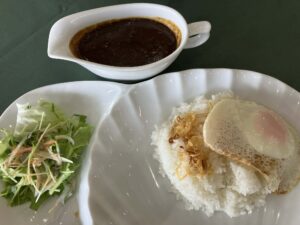 ランチはカレー、スパイスが効いており美味しい。
