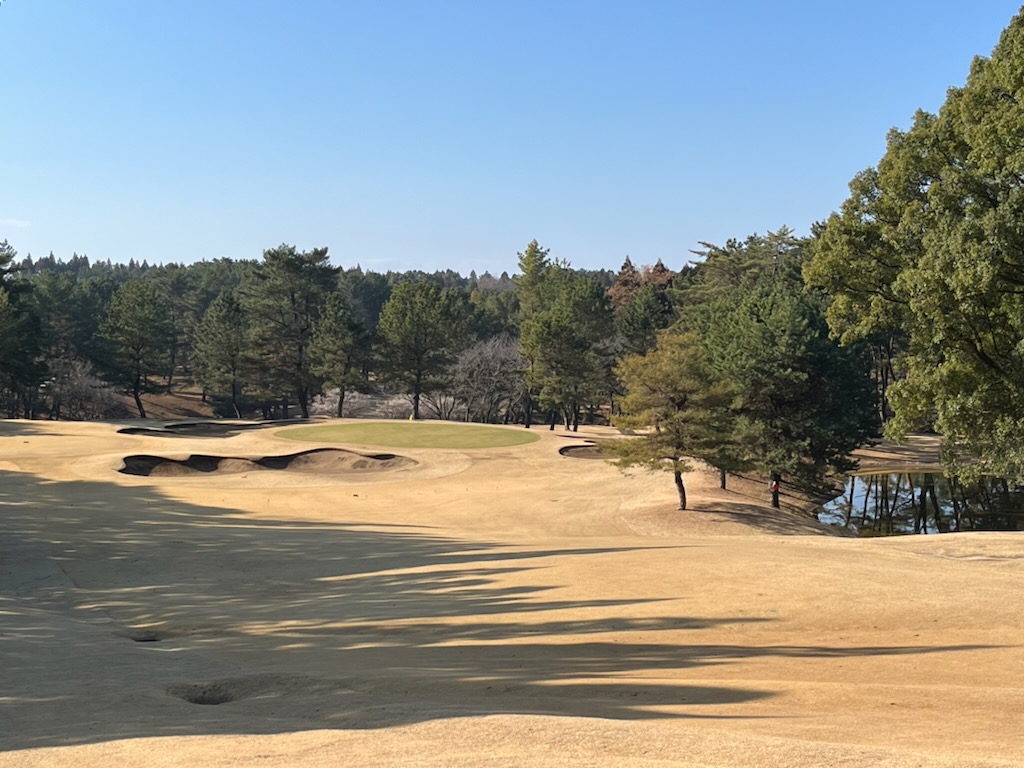 スタートはインの10番から、昨日の不調をすっ飛ばしたい思いでのラウンドでしたが、ボギー、ダボ、トリ、ダボ、ボギーとなんとか食い下がります。13番ショートと14番ミドルの間には茶店があり、そこが一番空港に近い場所で、飛んでくる飛行機のお腹が見えるポイント、タイミング良く飛行機は来なかったものの、飛行場が近いことがよくわかるホールです。しかしこの後の15番ミドルで思わぬ悲劇が。1打目を林に打ち込んだものの、レイアップを経て、4打目でグリーンややオーバーのエッジに。ここからパットで寄せてと普通はこうなのですが、グリーンはトーナメントを控えて高速な上に、上からはかなりの傾斜があリます。そのため大きく膨らませてゆるくパットを打ちますが、カップを過ぎても止まらないどころか加速していく始末。ああ大オーバーだとがっかりしていたら、なんと球はバンカーまで落ちているではありませんか。6打目はバンカーから強めに出てグリーンを超えた右側奥に、そこからのアポローチまた球は止まらず、グリーン外へ。結局カップインまで11打もかかってしまいました。こうなるともう意気消沈。前半のあがり3ホールはダボ、トリ、ボギーとパーは一つも取れずに終了。