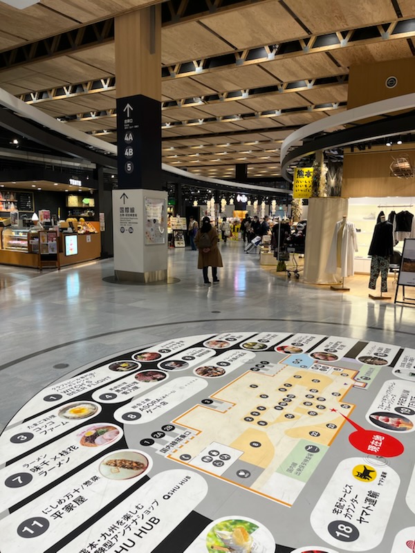 遠征参加の他のメンバーは、は翌日に玉名カントリークラブのラウンドと続きますが、私を含む3名は1日早く帰京。帰りの空港では復興の成果か、まるでショッピングモールのような充実ぶりに脅かされました。しかも保安検査場を通った後の施設がショッピングモールのような施設ですから驚きもひとしおです。ここでいくつかのお土産と、くまモンのぬいぐるみ、名物の辛子蓮根を購入し、帰途についたのでした。