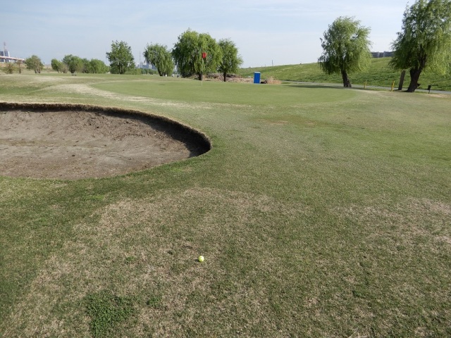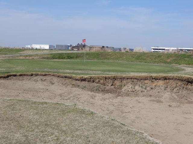 コース内にも微妙なマウントなどもあり、グリーンまわりも、立体感がある造形がなされているところもあります。グリーンは小さめですが、結構アンジュレーションがあります。ただ、現状ではちょっとメンテナンスのレベルが低すぎて、グリーン上でパットを楽しむ、というのは、個人的には、難しいと感じました。