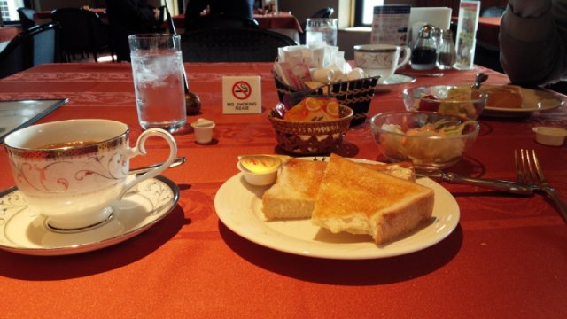いつもはコンビニで済ませますが、今日は、倶楽部で朝食を食べました。トーストセットを食べ、スタートまでコーヒーを飲みながらゆったりと過ごしました
