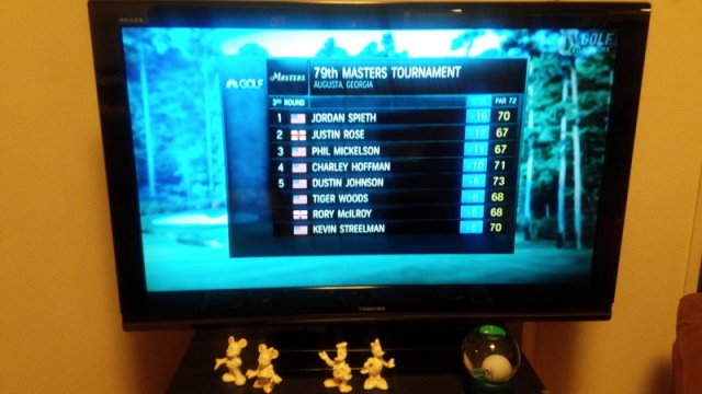 。倶楽部にあるテレビの前も、人だかりでした。プレーはマスターズのようにはいきませんでしたが・・・イメージは同じです(笑)アンの自宅でも、いつもゴルフ番組がついてます。そしてこの液晶テレビは、ゴルフの賞品