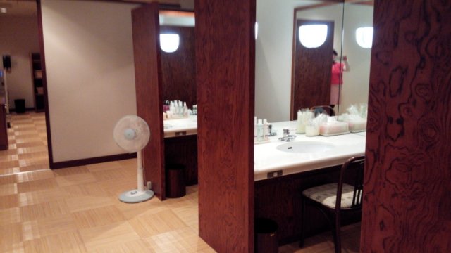 パウダー席は7席ほどあり、1席ごとに仕切られています。この日アンは仕事で疲れていて、パーティまで時間があったので、くつろげるソファー