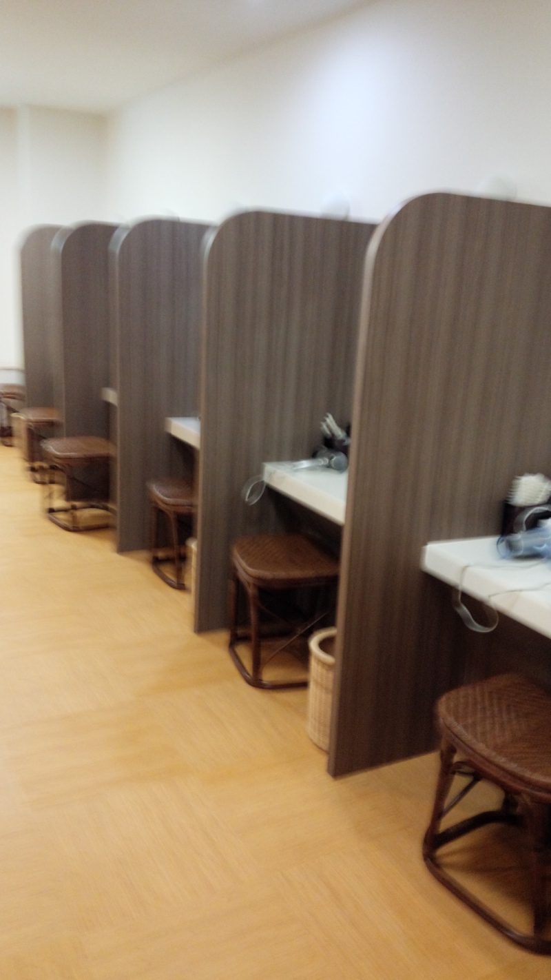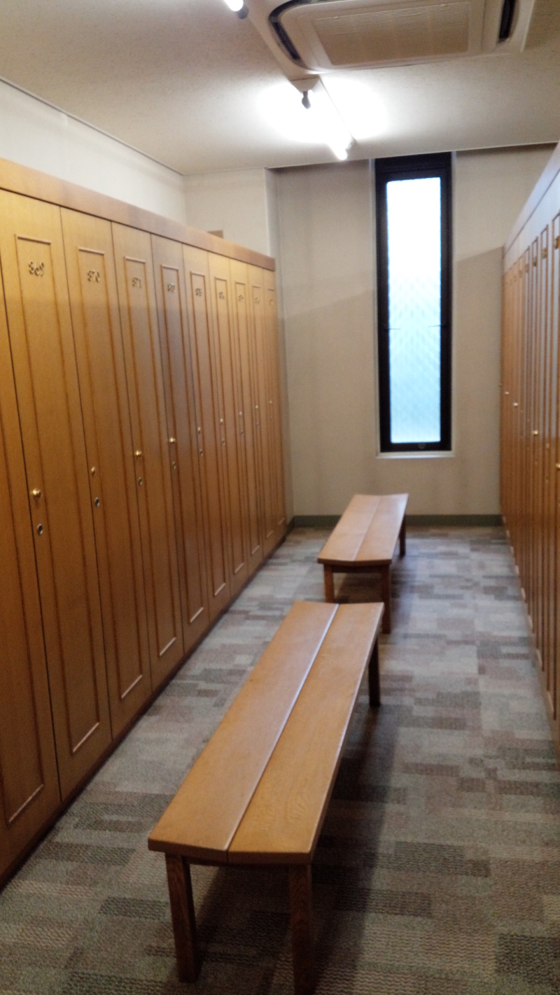 廊下の途中に仕切られた洗面台5席ほどあり、ロッカーとロッカーの間も少し狭くて圧迫感がありました。