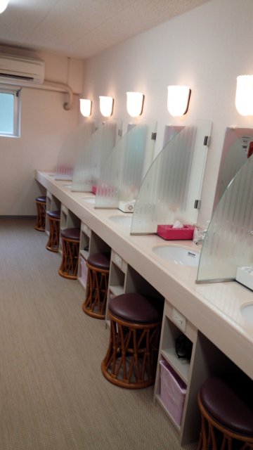 一般的な女子風呂です。パウダー席は5席ほどありました。試合の日は、これでは足りないので男子ロッカーも使うことになります。