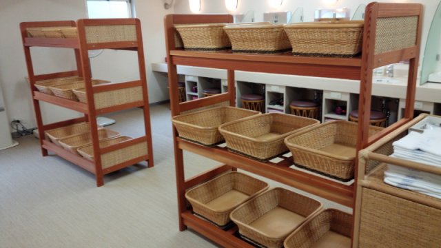 それでは、女子ロッカーをご案内します。ロッカーも数年前と比べて、改装(平成26年の3月にリニューアル)され綺麗になってます。少し全体的に狭めですが、十分な感じです。