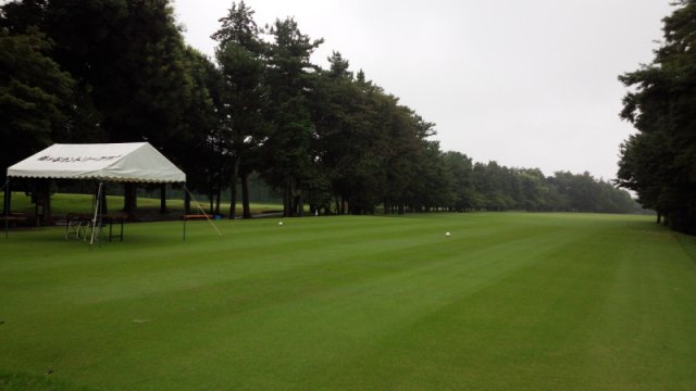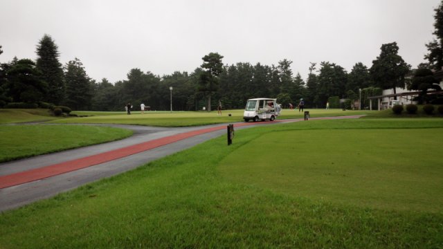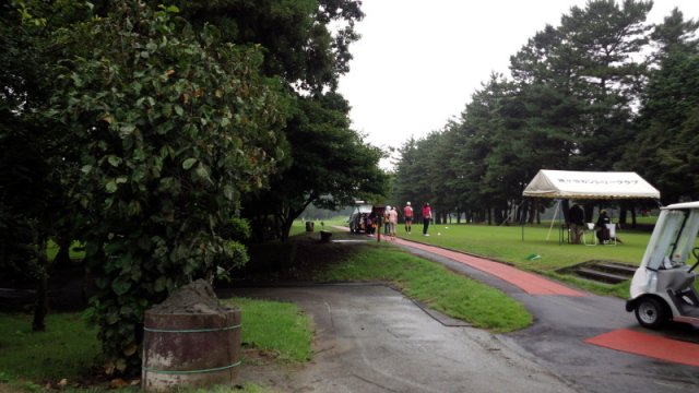 を出発。ゴルフ場には7時50分着。25分で受付、準備などを済ませ、時間は8時15分。練習場(ボールは24球と決まってます)で25分とアプローチ/バンカー練習で20分、パター練習を20分ほどしてスタートとなりました。