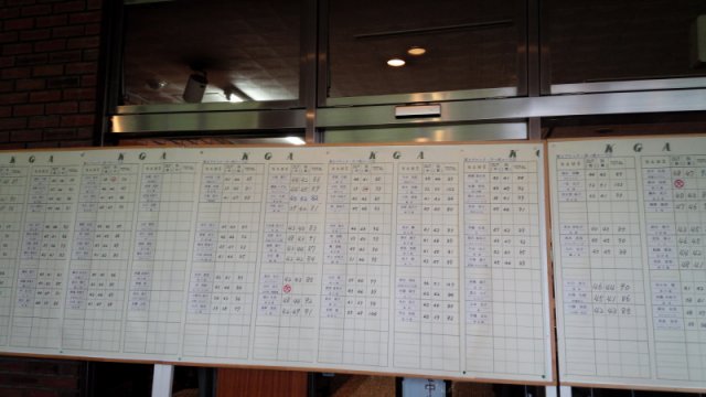 ホールアウトすると、ボードにスコアが書かれます