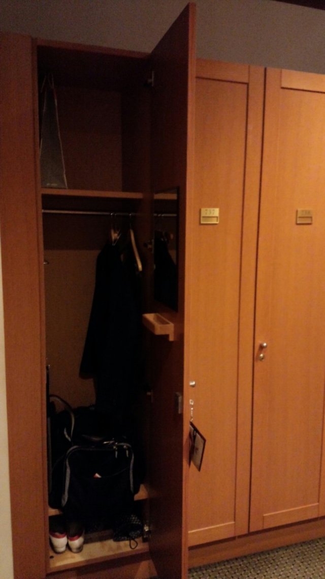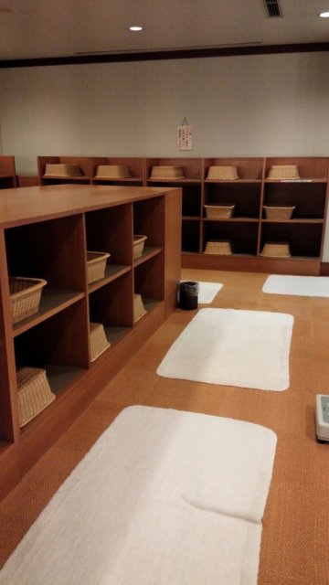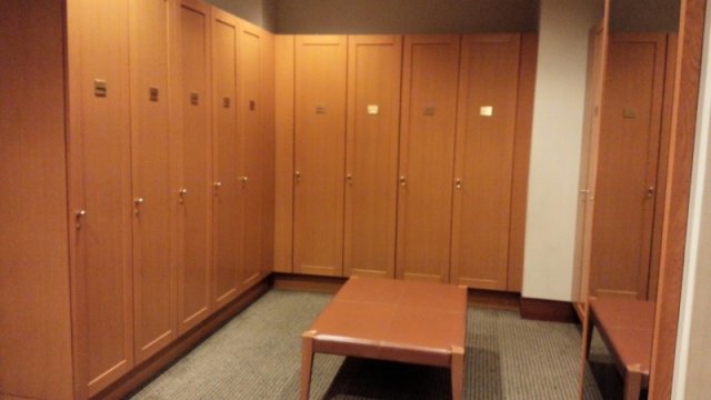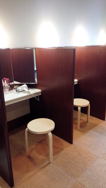 一般的な女子ロッカーで、比較的広い作りでした。パウダー席は6席ほどありました。