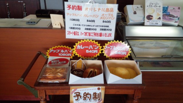 )がありました。たまにゴルフ場でこのような手作りケーキやパンなどを置いているところがあります。予約制(ということは、おいしいかも・・!)で、朝や昼食時に注文しておいて帰りに受け取るというものです。ひかれます~