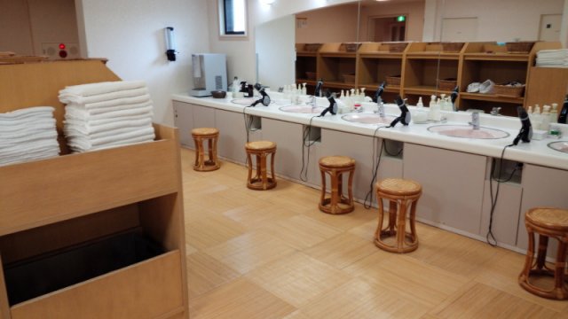 脱衣所には10席ほどのパウダー席があり、広々と使えます