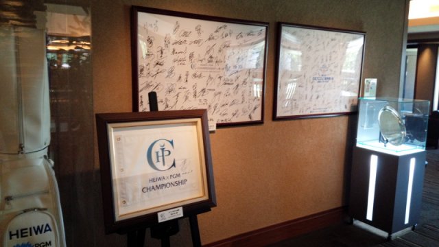 クラブハウス内には、「HEIWA・PGM CHAMPIONSHIP」開催のグッツiconが飾られていました。今年も11月に開催されるようです。