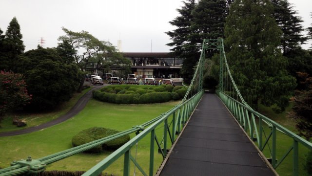クラブハウスの前には、池があり吊り橋があります。現在は、乗用カートになっています。