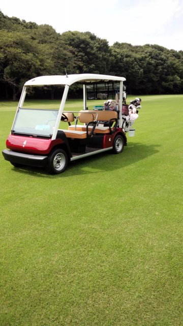 現在、カート乗り入れを実施しています。捻挫をしたアンには、ありがたい神対応です!ショットをしたら歩かずにカートに乗れます。ただ、チョロばかりだと歩かなくてはなりませんが・・・・。 カート道路があるのに、フェアウェイの真ん中をカートが走行、日本のゴルフ場ではあまり見ない光景です