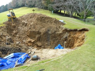 先日の大型台風の影響でコースの一部が壊れてしまいました。