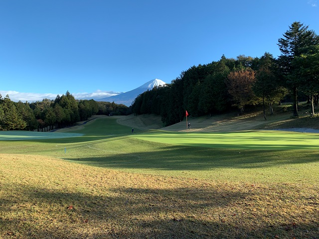 1日目の富士チサンは、カートの乗り入れができるのでとても楽チン。正月でなまった体でも余裕のラウンドです。コースの方のお話では「富士宮は暖かく、なかなか雪が積もらないのでクローズも少ない」とのこと。PGM所有のコースで整備も良く、なんといっても旧地産グループコース特有の砲台グリーンが面白い!富士山からの芝目があるのですが、ワタクシはコース全体の傾斜で見たほうがグリーンを攻略できるのではないかと思いました。受けグリーンと逃げグリーンがはっきりしていて、一見さんには厳しい!横からのアプローチは寄らないし、パットは信じられないくらい曲がります!ワタクシもやられっぱなし…楽チンゴルフでも腕が伴わない(苦笑)。林間の趣もあり広いホールも多かったのですが、薄い枯れ芝からのアプローチに悪戦苦闘。ザックリトップ連発…凡スコアでこの日は終了。やっぱりアプローチとパットはスコアメイキングの要と思った次第です。