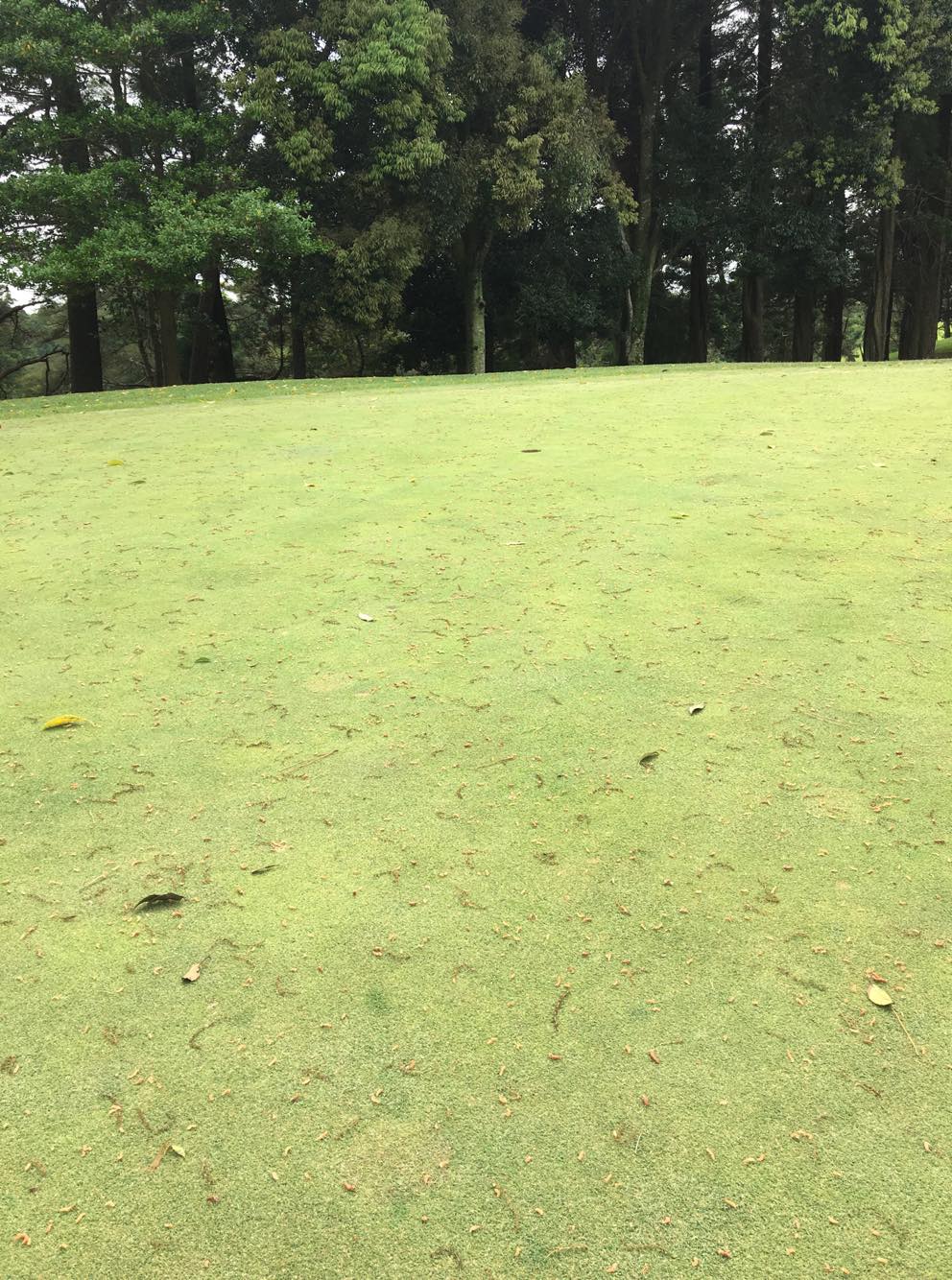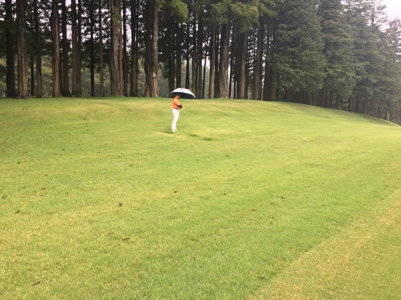 16番ミドルはティーショットが右の林近くで、セカンドグリーンが狙えない。