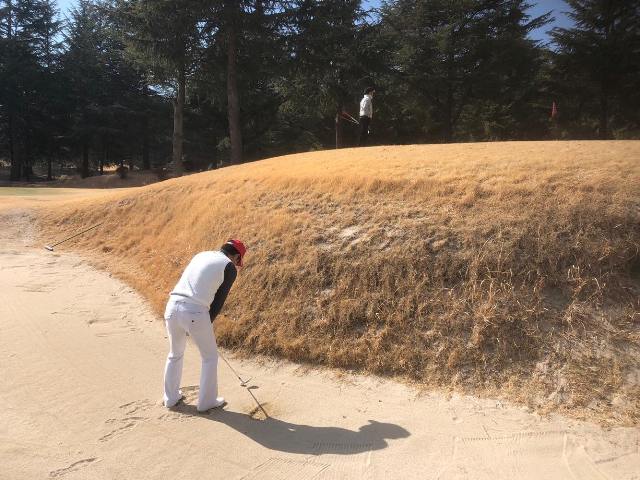 サードで左奥15歩につけ、バーディーパット狙うも寸止めとなりガックリ。