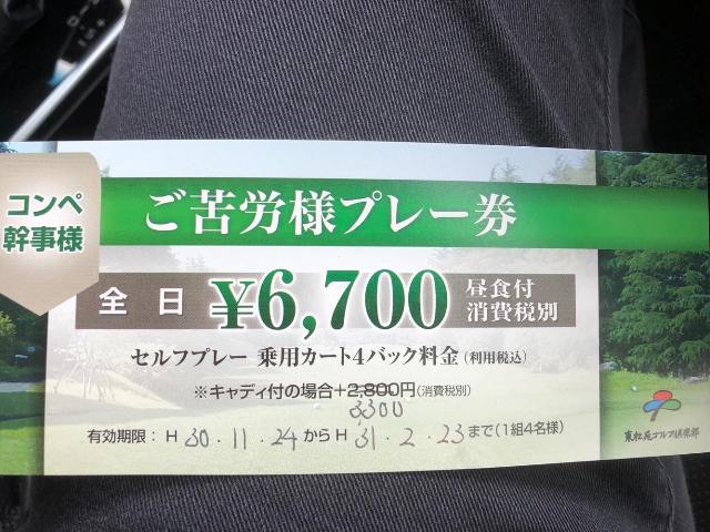 11月に開催した東松苑でのコンペ、幹事のご苦労様プレー券を頂いておりました。