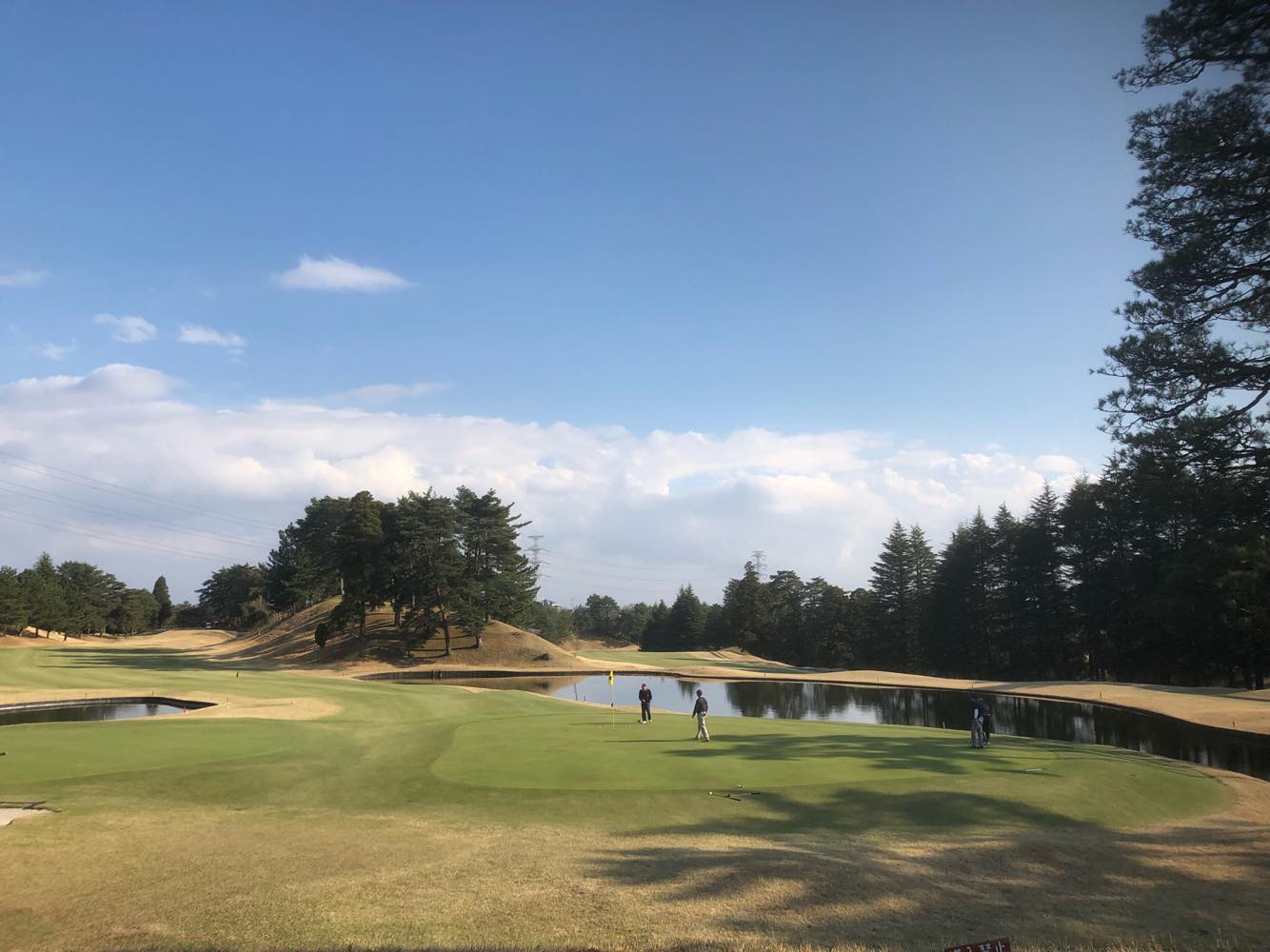 2番ショートは左の池側に、誘うようにピンを立てている。