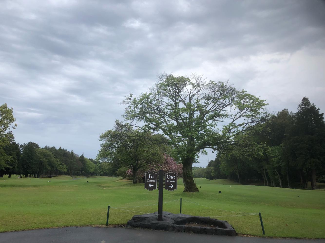 木が邪魔なので7鉄で転がすが、3打目グリーン奥にこぼれダボを叩く。