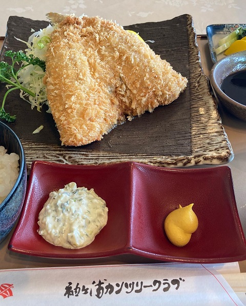 朝食が美味しすぎて期待値が高すぎたか、普通の大振りなアジフライでした。