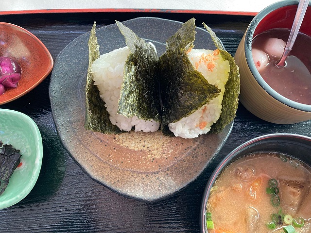 9時50分までは朝食メニューがオーダーできるので、500円のおにぎり定食をオーダー。
