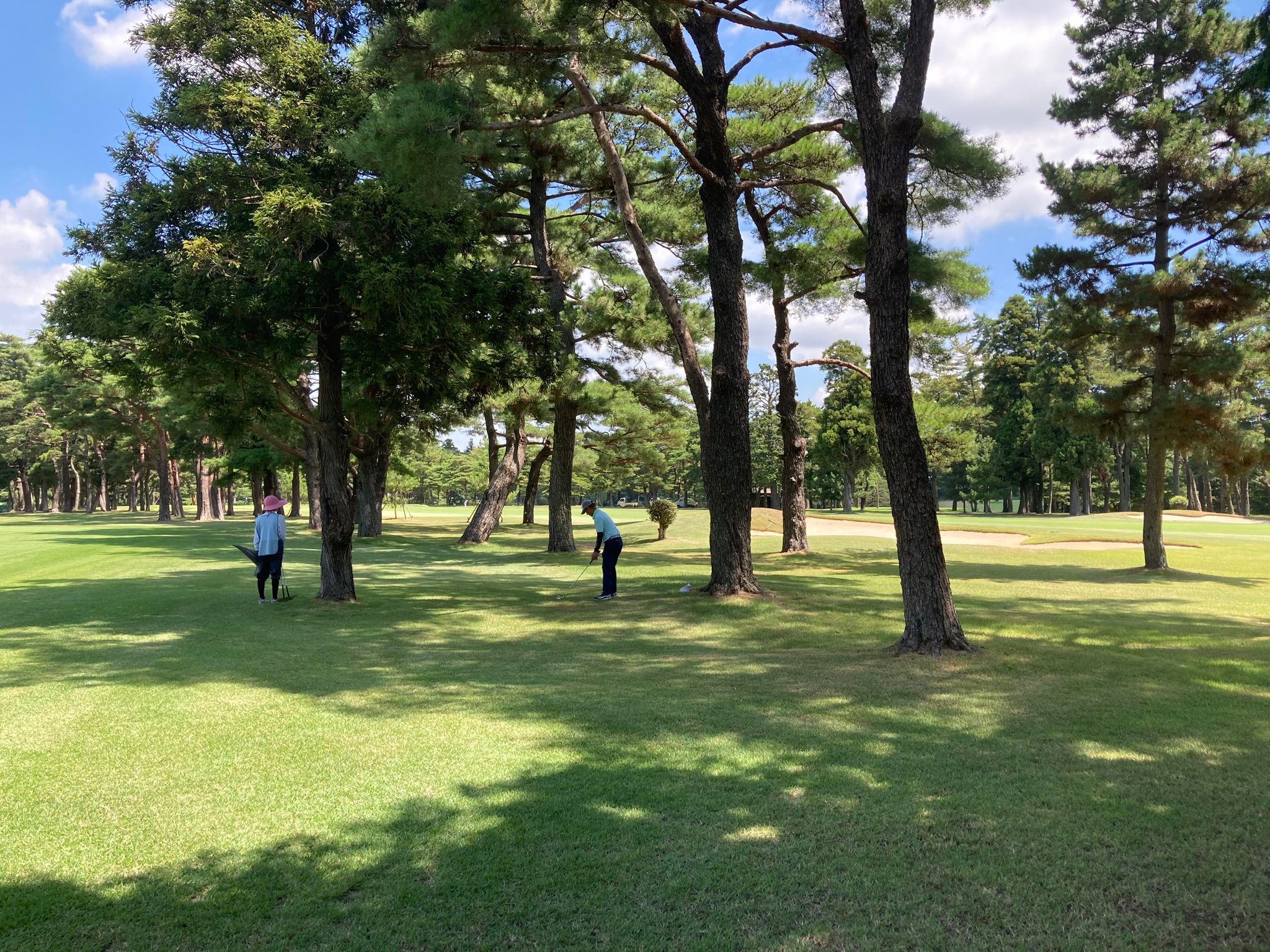 ドライバーのボールの位置を左足寄りに修正したSさん、寄せが決まりナイスパー。