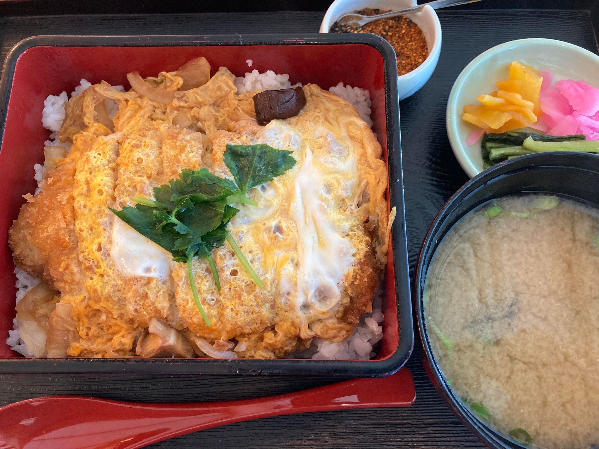 ランチはカツ丼をオーダーするも、お肉がパサパサで固く失敗作でした。