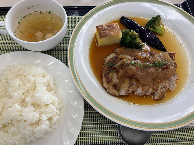 千葉県産の豚ロースにオニオンソースがマッチしている。