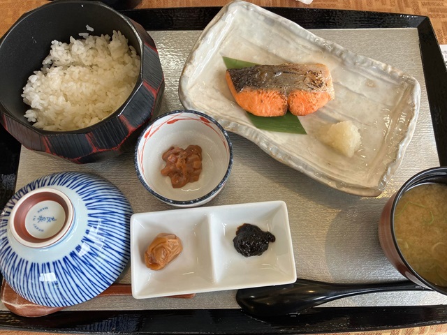 ランチは和朝食1300円をオーダー、鮭が美味しくグッド。